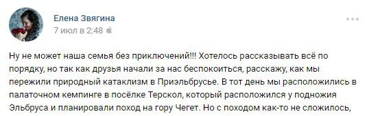 О масштабах стихии 5 июля в Приэльбрусье можно судить по рассказу туристки, оказавшейся в этот день в палаточном кемпинге в поселке Терскол. По ее словам, ее семью спасли местные жители.