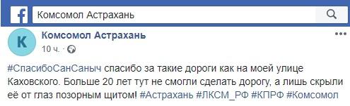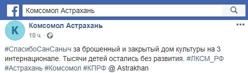 В социальной сети Facebook на странице "Комсомол Астрахань" опубликованы посты с упреками в адрес Жилкина, в частности, за проблемы с закрытием социального объекта и ремонтом дороги.