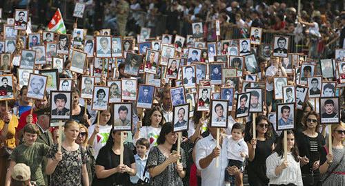После парада по улицам Сухума прошли участники акции «Бессмертный Полк». В акции приняли участие около 1500 человек из всех районов республики. В их числе родственники погибших в войне 1992-1993 годов, они держали в руках фотографии близких людей, которые не вернулись с фронта или же ушли из жизни уже после войны, передает «Sputnik-Абхазия».