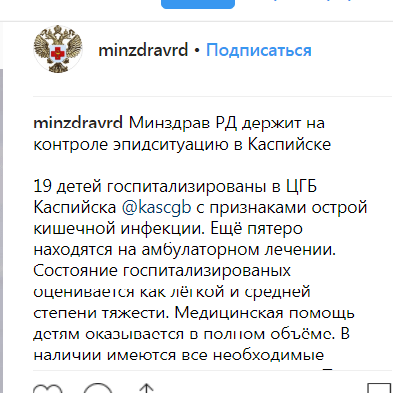 Дети находятся в состоянии лёгкой и средней степени тяжести и уже выздоравливают, сообщило 30 сентября Министерство здравоохранения Дагестана на своей странице в Instagram.
