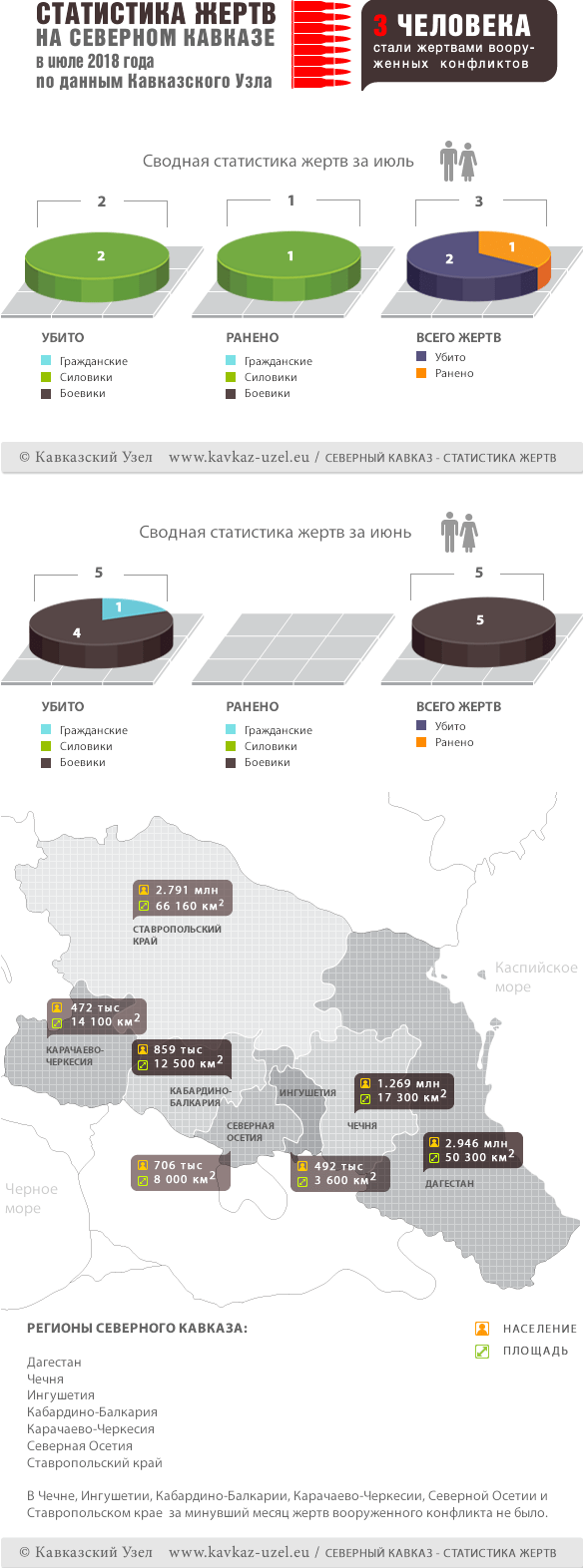 Инфографика. Статистика жертв на Северном Кавказе в июле 2018 года по данным Кавказского Узла