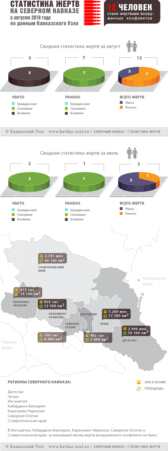 Инфографика. Статистика жертв на Северном Кавказе в августе 2018 года по данным Кавказского Узла