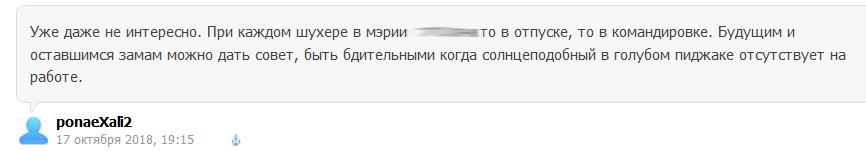 Во время других задержаний вице-мэров Сочи глава города также отсутствовал на рабочем месте, обратил внимание пользователь ponaeXali2. "... то в отпуске, то в командировке. Будущим и оставшимся замам можно дать совет, быть бдительными, когда [Пахомов] отсутствует на работе".