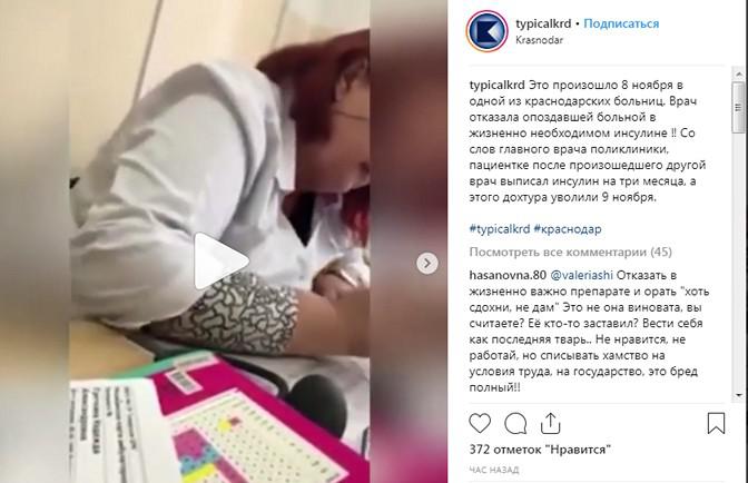 Видеоролик опубликован сегодня в группе typicalkrd соцсети Instagram. На нем запечатлен момент общения врача с пациенткой.