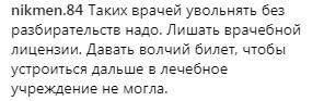 "Таких врачей увольнять без разбирательств надо. Лишать врачебной лицензии. Давать волчий билет, чтобы устроиться дальше в лечебное учреждение не могла", - пишет nikmen.84.