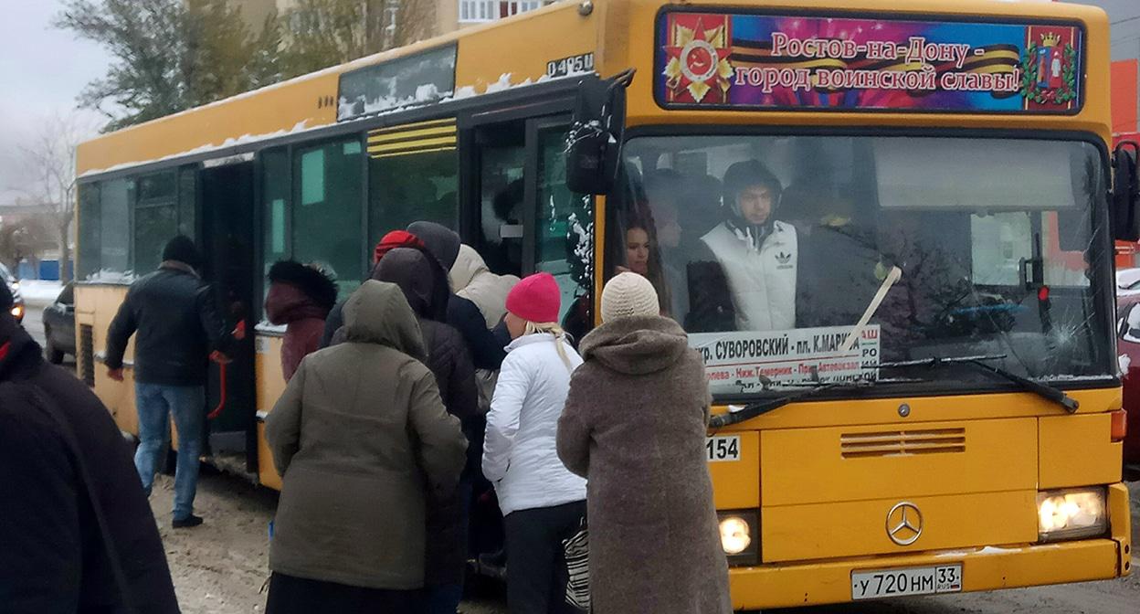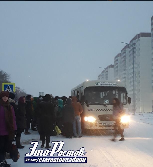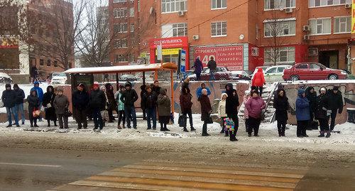 "Я 40 минут стою на остановке и не могу уехать на работу. Сесть в транспорт просто нереально: маршрутки забитые, даже не останавливаются", - приводит издание слова ростовчанки, представившейся Александрой.