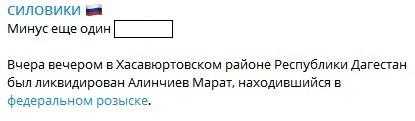 Убитым является находившийся в федеральном розыске Марат Алинчиев, сообщает telegram-канал «Силовики».