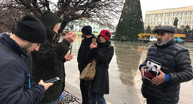 К отцу убитых пастухов вышел сотрудник администрации главы Дагестана и поинтересовался, с какой целью тот проводит пикет. Чиновник предложил Муртазали Гасангусейнову вместе сходить в администрацию города или в Минюст. "Могу сходить с вами туда узнать, в чем дело", - сказал пикетчику представитель властей.