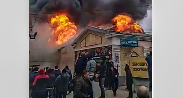 Крупный пожар произошел на рынке в Пятигорске