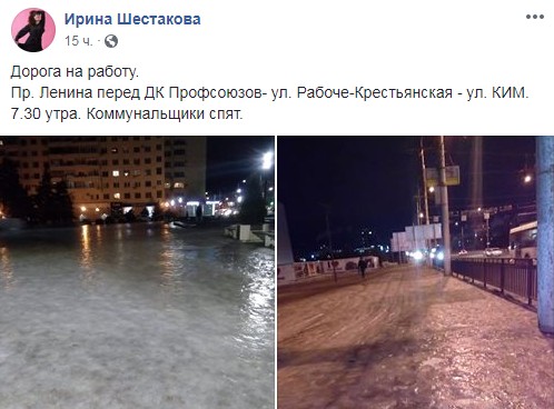 Фото обледенелой дороги в Ворошиловском районе Волгограда сегодня выложила на своей странице в Facebook местная жительница Ирина Шестакова, добавив надпись: "Дорога на работу. Пр. Ленина перед ДК Профсоюзов - ул. Рабоче-Крестьянская - ул. КИМ. 7.30 утра. Коммунальщики спят".