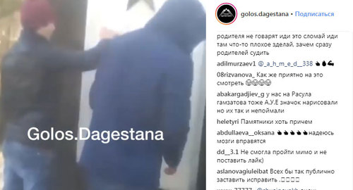 О задержании несовершеннолетних также говорится и в описании к видео, опубликованном 22 января на странице сообщества "Голос Дагестана" в Instagram (819 972 подписчика). На видео трое молодых людей, чьи лица не показаны, отмывают и оттирают тряпками мраморные плиты, на одной из которых изображена звезда.