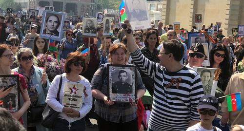 Как писал "Кавказский узел", 9 мая в Азербайджане объявлено праздничным днем, но на государственном уровне массовые шествия и военный парад в этот день не проводятся. Однако в 2018 году в акции "Бессмертный полк" в Баку приняли участие более 500 человек.
