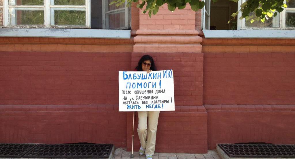 Жительница Астрахани Элия Мухтарова провела одиночный пикет с требованием компенсировать жилье в общежитии, рухнувшем десять лет назад. Чиновники не дали Мухтаровой квартиру в отместку за то, что она заранее указывала властям на аварийное состояние общежития, предположила депутат облдумы Мария Лиджиева.