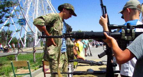 Корреспондент "Кавказского узла" спросил у участников акции, по своему ли желанию они пришли на мероприятие. Футболисты из спортивной школы "Олимпия" сказали, что они часто участвуют в подобных мероприятиях.