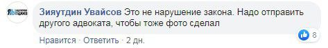 "Это не нарушение закона. Надо отправить другого адвоката, чтобы тоже фото сделал", - написал, в частности, председатель коллегии адвокатов "Традиция" в Махачкале Зияутдин Увайсов.
