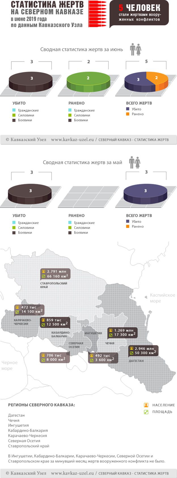 Инфографика. Статистика жертв на Северном Кавказе в июне 2019 года по данным Кавказского Узла