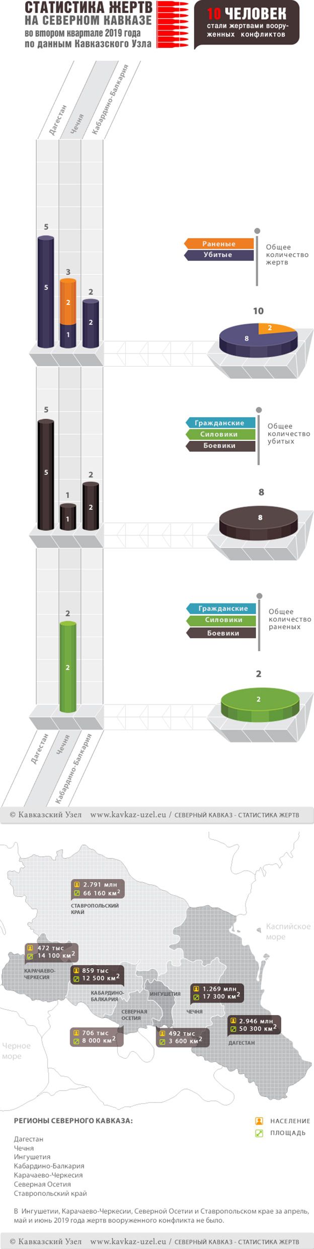 Инфографика. Статистика жертв на Северном Кавказе во втором квартале 2019 года по данным Кавказского Узла