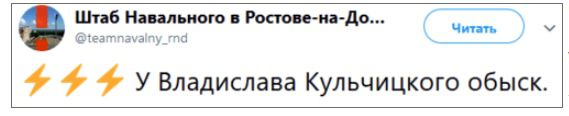 Обыски проходят также у координатора краснодарского штаба Навального Размика Симоняна и активиста Виталия Вотановского, уточняет "Юга.ру". В Ростове-на-Дону обыск начался у активиста Владислава Кульчицкого, сообщил местный штаб Навального в Twitter.