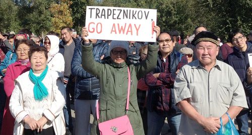 "Многие из взрослых людей говорят: "Да отшагните назад, зачем вам этот митинг". Шагать места нет, сзади - пропасть, Трапезников - это просто пропасть. Дело не в том, что он русский, а не калмык. Возмущает..., что его поставили незаконно. Не было даже гражданства до последнего времени, нет опыта работы в муниципальной среде... Я переживаю за будущее моего народа", - сказал он.