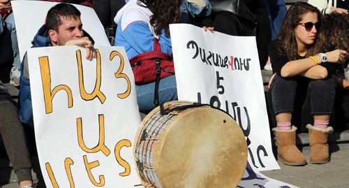 Как писал "Кавказский узел", 4 ноября молодежное крыло АРФ "Дашнакцутюн" потребовало отставки министра образования, науки, культуры и спорта Араика Арутюняна. 6 ноября молодежные активисты "Дашнакцутюн" провели акцию протеста с требованием, чтобы сегодня Арутюнян не присутствовал на заседании правительства.