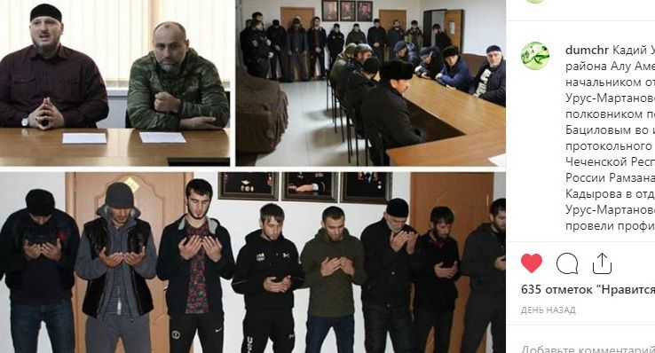 Сообщение проиллюстрировано фотографиями, на которых около десятка молодых мужчин стоят вдоль стены, опустив головы. "Собравшиеся призвали молодых людей к здоровому образу жизни, соблюдению правил дорожного движения. [...] В завершении встречи задержанные под руководством кадия района сделали дуа и совершили товба (покаяние, – прим. "Кавказского узла"), раскаиваясь в содеянных грехах", сообщил муфтият Чечни.