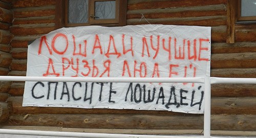 Около КСК собрались также владельцы лошадей, волонтеры и неравнодушные горожане, рассказала корреспонденту "Кавказского узла" волонтер клуба Ксения. По ее словам, накануне на заборе у клуба появились подготовленные добровольцами плакаты "Лошади – лучшие друзья людей. Спасите лошадей!", "SOS!", "У лошадей должен быть дом!" и другие.