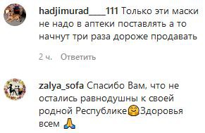 "Спасибо Вам, что не остались равнодушны к своей родной республике", - написала, в частности, zalya_sofa. "Спасибо вам большое! Вы всегда поддерживаете свой народ!" – обратилась к сенатору zera_hakulova.