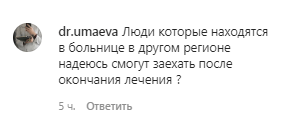 "Люди, которые находятся в больнице в другом регионе, надеюсь, смогут заехать после окончания лечения?" - поинтересовалась dr.umaeva.
