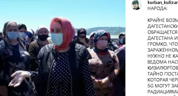 Дагестанский певец Курбан Кулизанов, 28 мая опубликовавший видео схода на своей странице в Instagram, пояснил, что местные жители обращаются к федеральным и республиканским властям. Из текста, которым он сопроводил публикацию видео, следует, что жители Нового Чиркея считают недопустимым установку таких вышек без их ведома и убеждены, что вышки способны "заразить людей радиациями больше, чем пандемией".