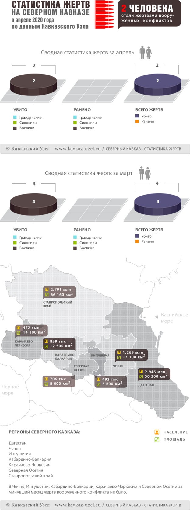 Инфографика. Статистика жертв на Северном Кавказе в апреле 2020 года по данным Кавказского Узла