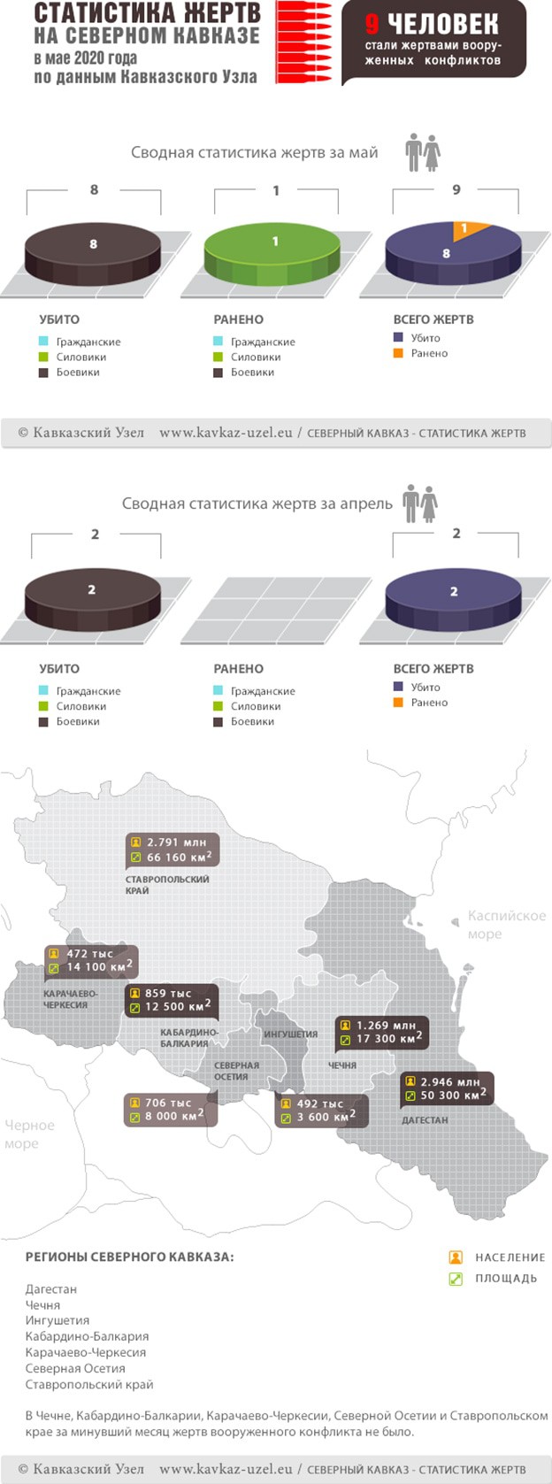Инфографика. Статистика жертв на Северном Кавказе в мае 2020 года по данным Кавказского Узла