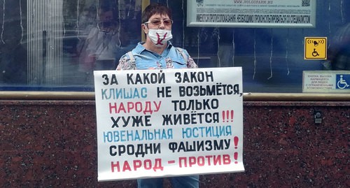 "В Госдуму внесено несколько законопроектов, касающихся семьи, в том числе Клишиса и Крашенникова, – сказала пикетчица Татьяна Педан корреспонденту "Кавказского узла". – Я считаю, это такой же точно проект, как в Норвегии, Финляндии, где по любому поводу полиция и соцслужбы изымают детей, и потом детей практически невозможно вернуть в семью. Экспресс-суды, которые хотят ввести в России, не дадут родителям шансов оправдаться, то есть родители будут заведомо виноваты. Кто-то пожалуется, и если опекунским советам или полиции только покажется, что есть угроза жизни ребенка, то они будут иметь право изымать детей. В деревнях много малообеспеченных семей, вместо того чтобы оказывать им поддержку, будут говорить, что дети могут умереть с голоду, и забирать их".
