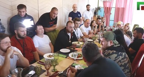 Рамзан Кадыров на встрече с группой блогеров был без маски, как и его гости, следует из опубликованного 9 августа телесюжета ЧГТРК "Грозный". Глава Чечни пренебрегает правилами, выполнения которых требуют от жителей республики, указали посмотревшие ролик пользователи Instagram.