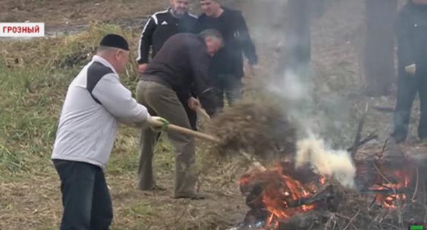 "Мы занимались уборкой придорожной территории вдоль трассы, которая ведет в Урус-Мартан. Убирали мусор с обочин, траву выкашивали. Другие работники занимались тем же у местного кладбища", - сообщил мужчина.