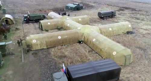 Подразделения медицинского отряда спецназначения развернули на территории аэропорта в Степанакерте полевой госпиталь, сообщило Минобороны России на своем сайте.