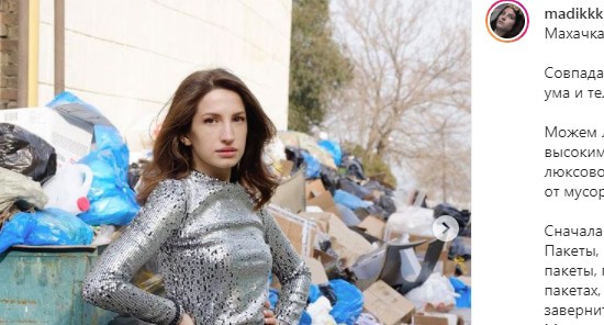 Как писал "Кавказский узел", журналистка Мадина Зиркуева и фотограф Имам Гусейнов запустили фотопроект "Внутренняя гармония", посвящённый мусорному коллапсу в Махачкале. В рамках проекта модели фотографируются на фоне мусорных куч в Махачкале. Пользователи Facebook отметили оригинальность и злободневность фотопроекта и предложили новые локации для съемок.