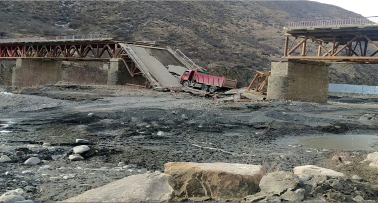 Информация о том, что на выезде из села Хебда Шамильского района при проезде грузовика обрушился пролет моста через реку Аварское койсу, поступила спасателям сегодня в 09.10 мск.