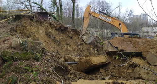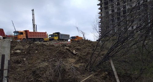 Корреспондент "Кавказского узла" побывала на улице Амбровой 7 апреля и убедилась, что на указанном участке площадью более полутора гектаров ведутся работы по вырубке деревьев, которые вывозятся грузовиками. Возле многоквартирного дома по улице Амбровая, 35 вырыт огромный котлован.