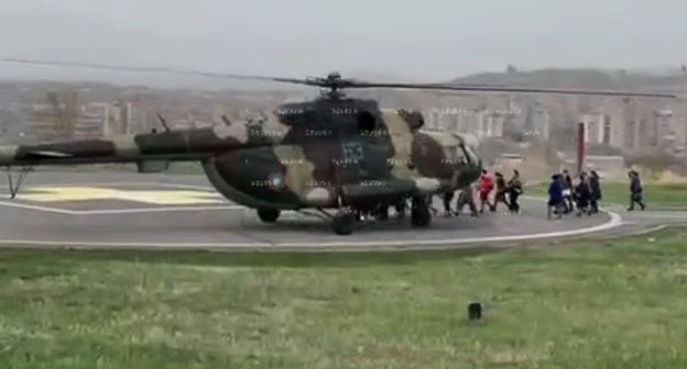 Тelegram-канал Mika Badalyan распространил видео, на котором видно, как группа примерно из 20 человек идет на посадку в вертолет.