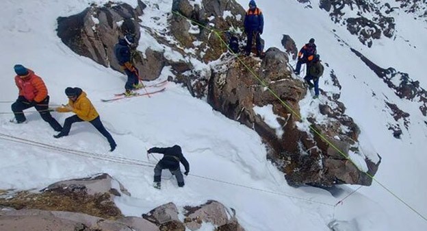 Поиски не дали результатов, сообщил начальник Эльбрусского высокогорного поисково-спасательного отряда МЧС России Абдуллах Гулиев. "Успели на вертолете облететь район, на данный момент поиски приостановлены. В этом районе сильный ветер сегодня", - привел его слова ТАСС.
