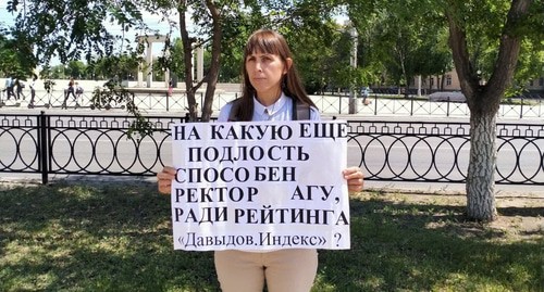 Одна из слушателей, активистка Елена Байбекова, после окончания судебного заседания вышла за территорию суда и провела одиночный пикет. В течение 15-20 минут она держала плакат с надписью о руководстве вуза.