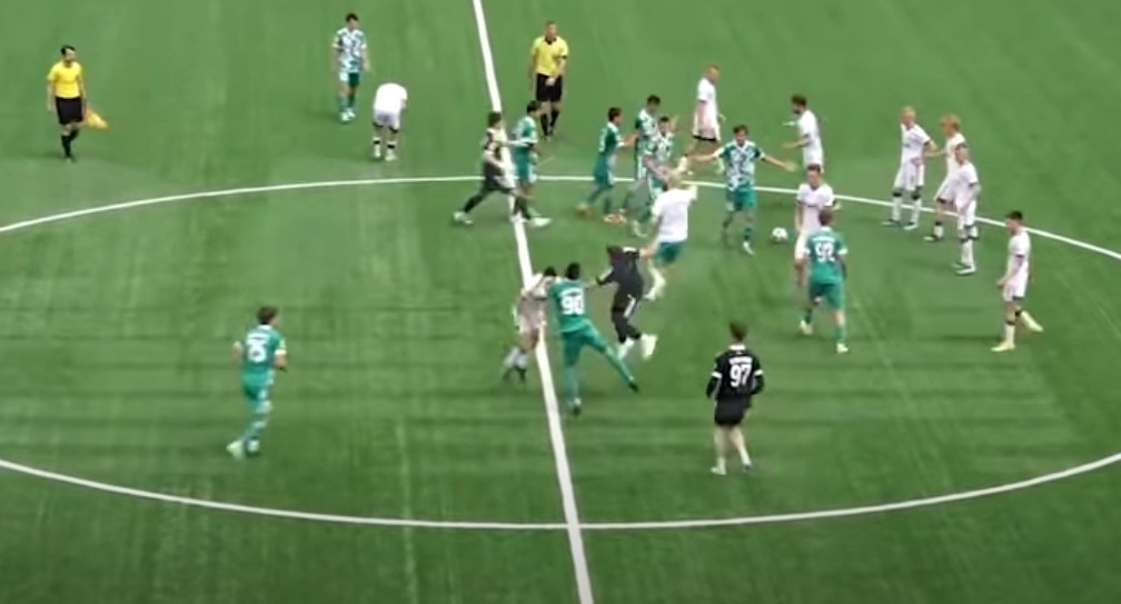 Видео драки опубликовал сегодня Telegram-канал Baza. В кадре судья свистит и подходит к игроку "Ахмата", показывая штрафную карточку. Игрок идет навстречу и, находясь рядом с судьей, делает резкое движение в его сторону, а затем разворачивается. За кадром раздаются и уже не стихают громкие крики болельщиков. Футболисты "Ахмата" собираются вокруг судьи, туда же подходят игроки "Локомотива". Москвичей начинают толкать, причем один из игроков "Локомотива" убегает, отрываясь от трех преследователей. Другой футболист столичной команды оказывается один между игроками "Ахмата" и получает несколько ударов.