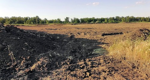 7 июля корреспондент "Кавказского узла" побывала на месте строительства. В Волго-Ахтубинской пойме на повороте с дороги на хутор Лебяжья Поляна подрядная организация на площади примерно 200 на 200 метров сняла плодородный грунт. Площадка со снятым грунтом обнесена столбиками с сигнальной лентой, на ее краю стоит вагончик охранника. Вместе с ним место строительства охраняют две собаки. Рядом с вагончиком стояли два бульдозера.