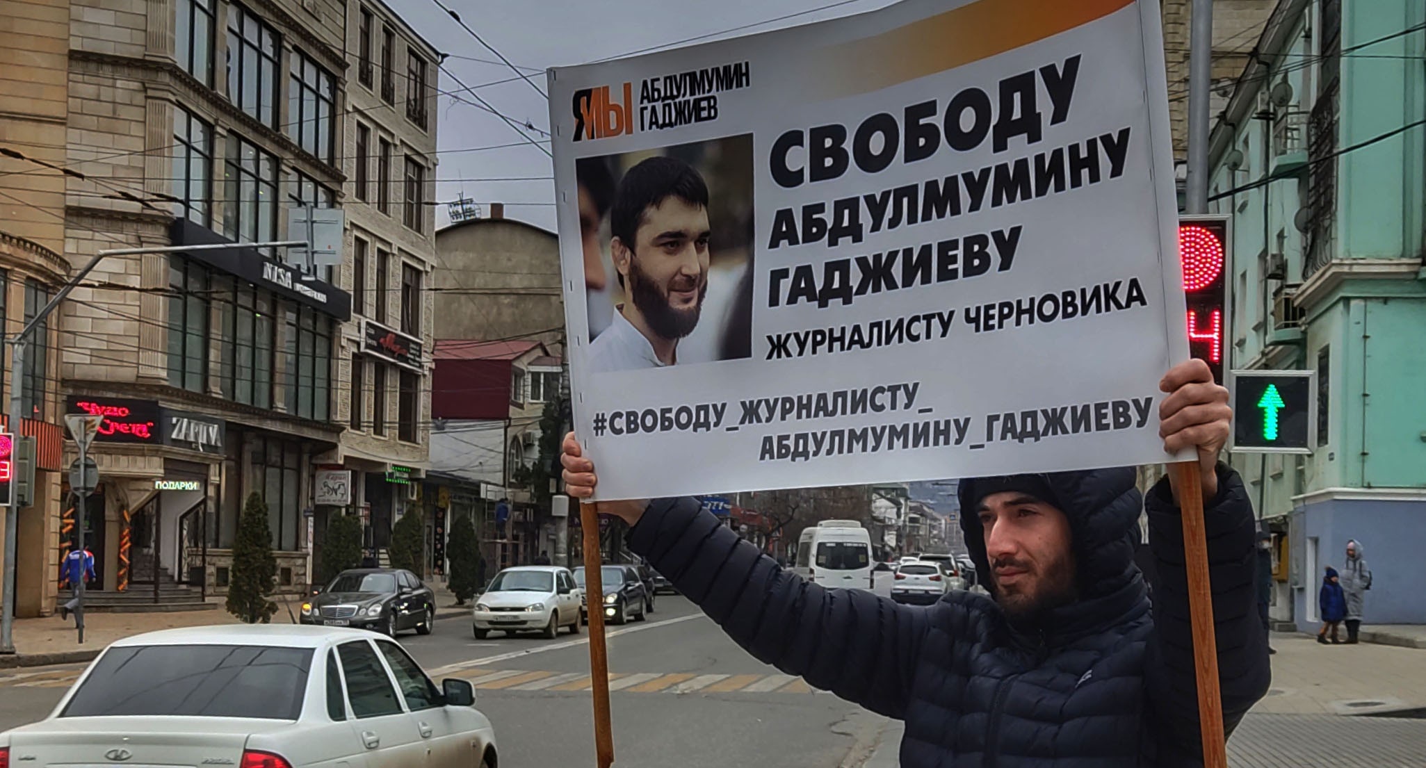Сегодня в центре Махачкалы на пересечении улицы Дахадаева и проспекта Расула Гамзатова прошли три одиночных пикета, рассказал журналист Идрис Юсупов. Первый пикет с требованием свободы для Абдулмумина Гаджиева провел заместитель главного редактора "Черновика" Магомед Магомедов. Второй пикет с требованием прекратить аресты без доказательств провел учредитель "Черновика" Магди Камалов. Третий пикет с требованием свободы для политзаключенных провел сам Идрис Юсупов. На месте проведения пикетов присутствовали также представители СМИ и родственники Абдулмумина Гаджиева, сообщил Юсупов корреспонденту "Кавказского узла".