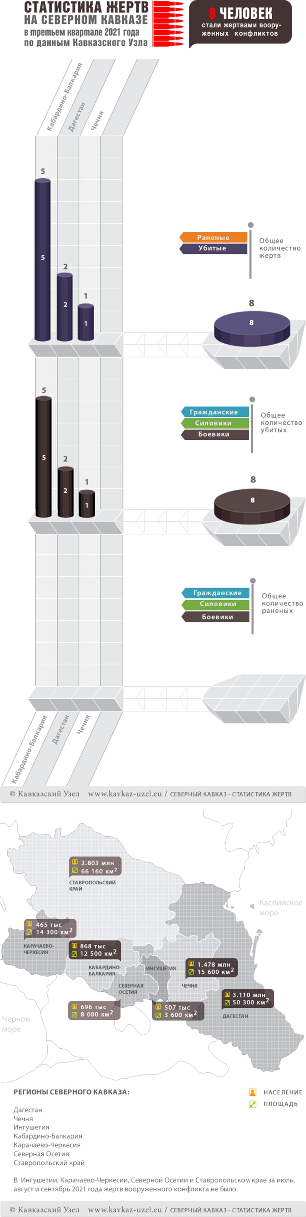 Инфографика. Статистика жертв на Северном Кавказе в третьем квартале 2021 года по данным Кавказского Узла