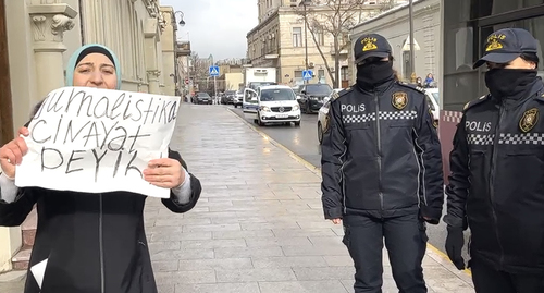 Гюльмира Асланова вышла на акцию протеста перед зданием Генпрокуратуры, требуя встречи с генпрокурором, передал корреспондент "Кавказского узла", посмотревший видеотрансляцию в Facebook-аккаунте Meydan.TV.