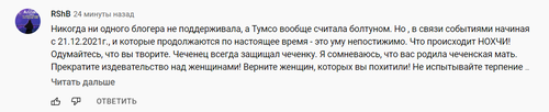 "Одумайтесь, что вы творите. Чеченец всегда защищал чеченку [...] Прекратите издевательство над женщинами! Верните женщин, которых вы похитили", - поддержал его пользователь RShB.