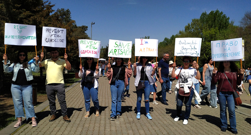 Активисты сегодня организовали пикет под лозунгом "Признайте Арцах!" (самоназвание Нагорного Карабаха- Прим. "Кавказского узла") у Мемориала памяти жертв геноцида армян в Османской Турции в 1915 году. Участники пикета требуют признания независимости Нагорно-Карабахской республики.Активисты держали в руках плакаты с надписями "Save Artsakh", "Признайте Арцах", "Право на самоопределение".