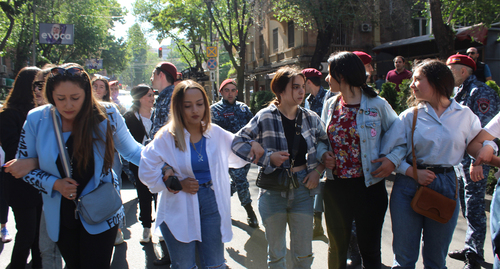 Как сообщал "Кавказский узел", сегодня утром армянская оппозиция возобновила в Ереване протестные шествия с требованием отставки правительства. Силовики начали задерживать активистов.