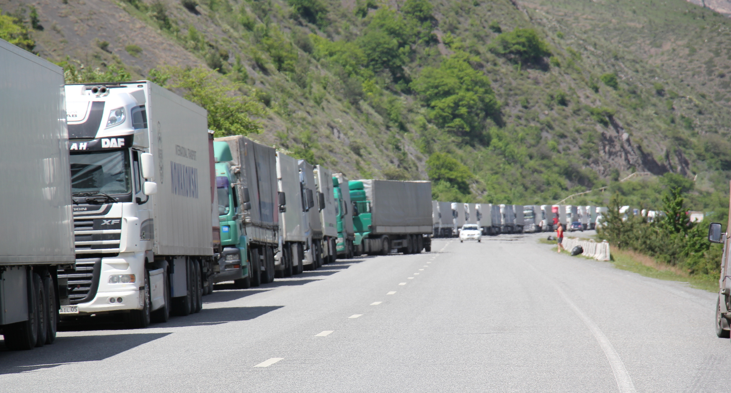 Хотя погода в "Верхнем Ларсе" была солнечная и сухая, однако множество фур не могли пересечь границу в обе стороны.